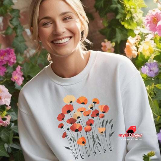 Poppies Floral Sweatshirt – Minimalist Wildflower Graphic Sweater
